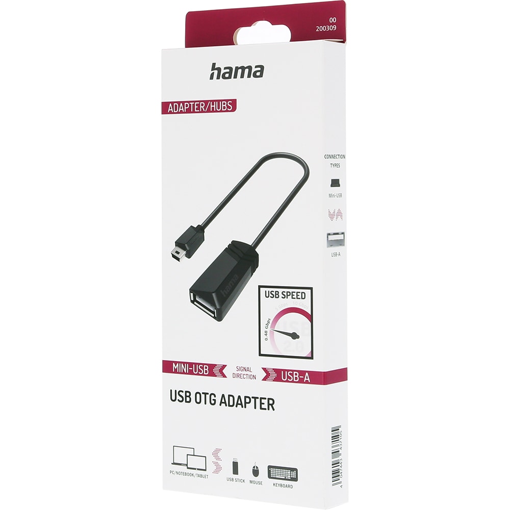 Cablu adaptor OTG USB A - mini USB B HAMA 200309, negru