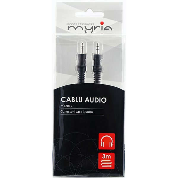 Cablu audio MYRIA MY2012, jack 3.5mm, 3m, negru