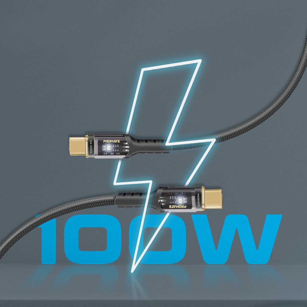 Cablu date PROMATE LucidLine-CC120, USB-C - USB-C, 100W Power Delivery, 1.2m, negru
