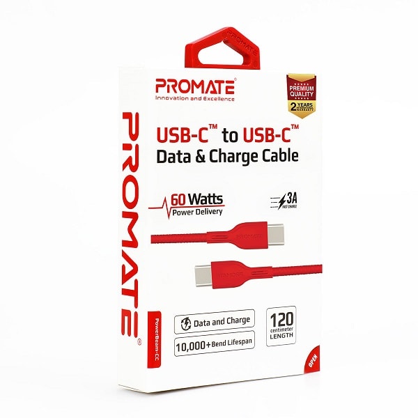 Cablu date PROMATE PowerBeam-CC, USB-C - USB-C, 1.2m, rosu