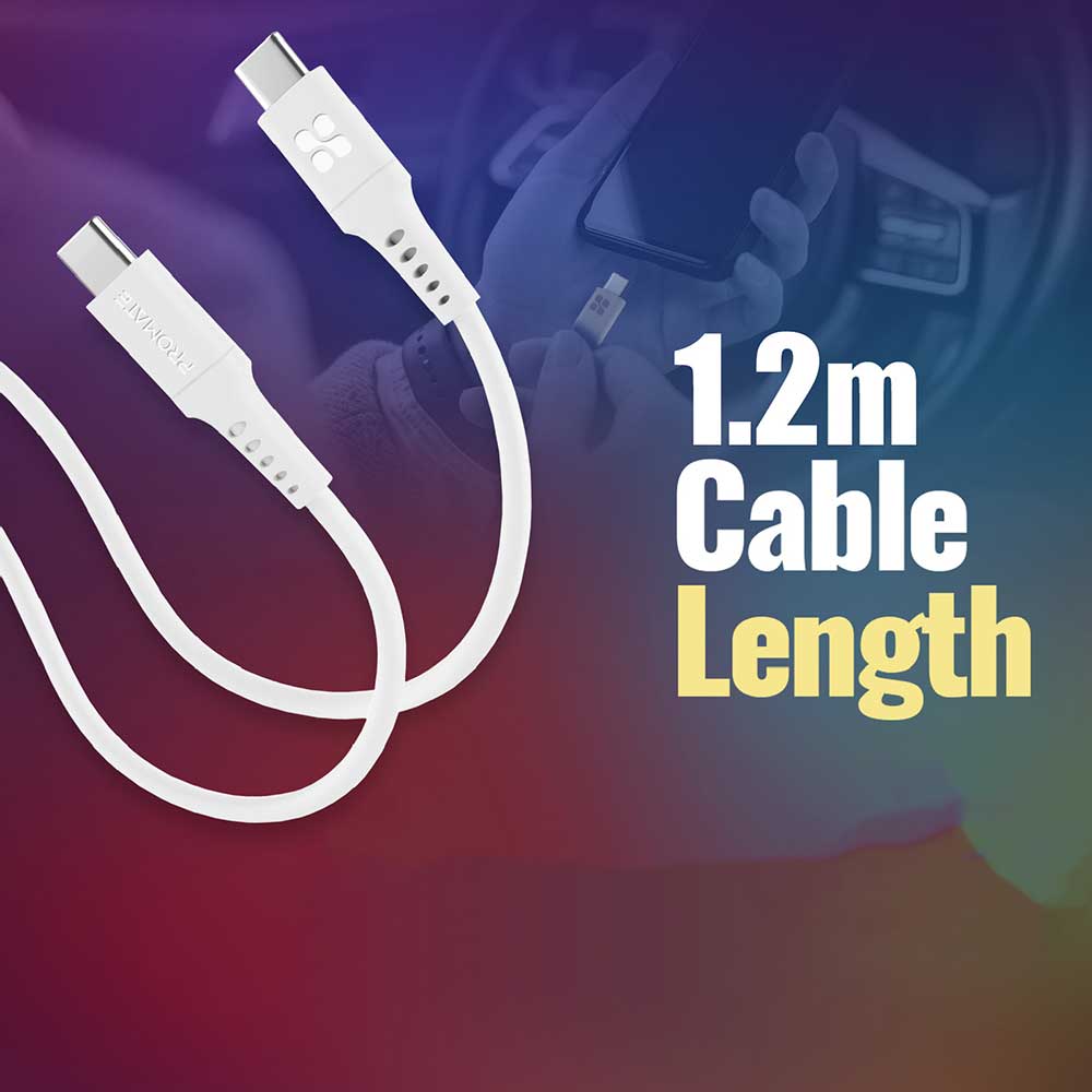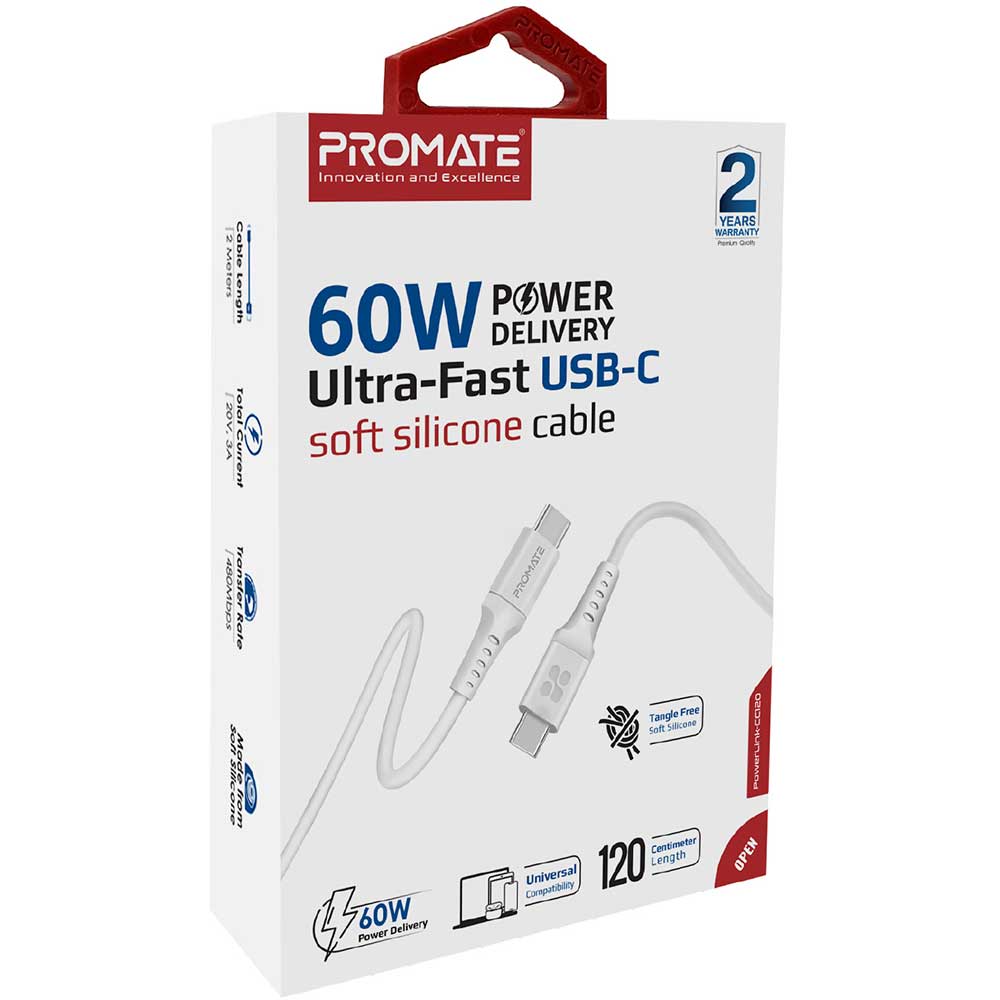 Cablu date PROMATE PowerLink-CC120, USB-C - USB-C, Power Delivery (PD) 60W, 1.2m, alb