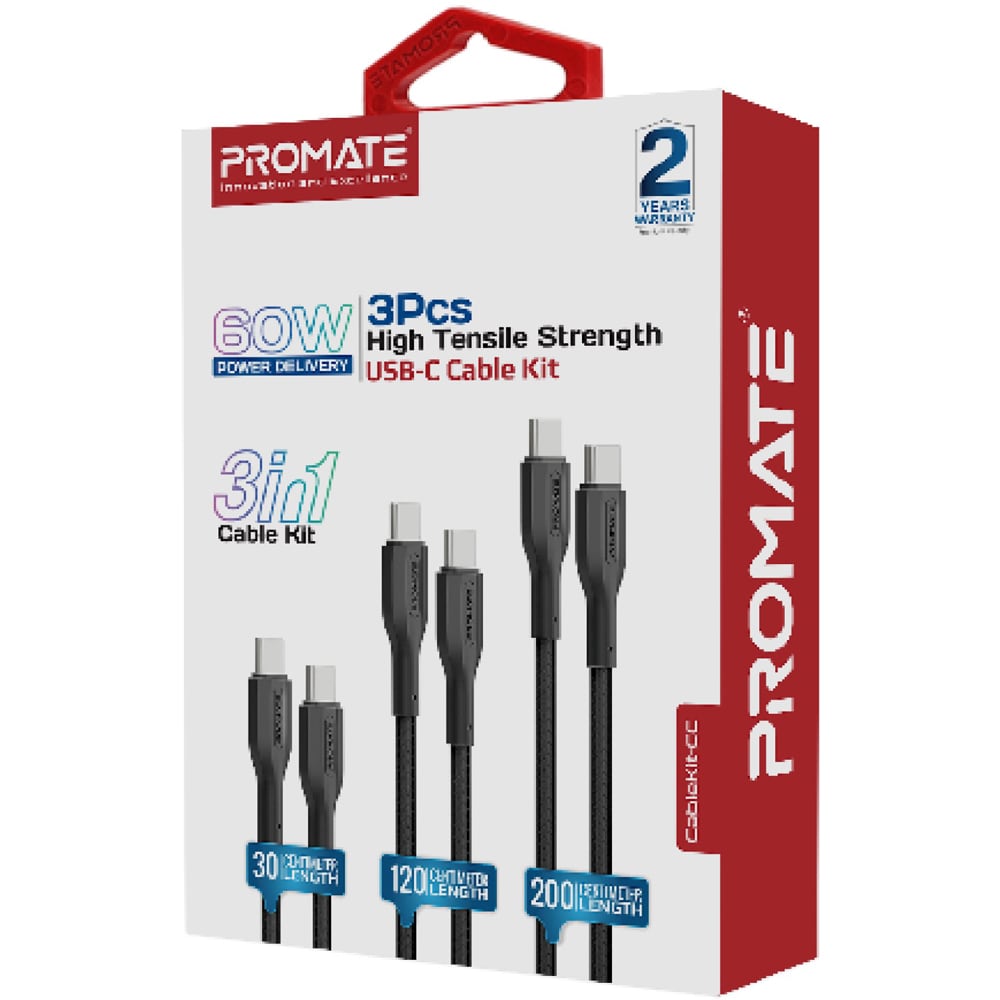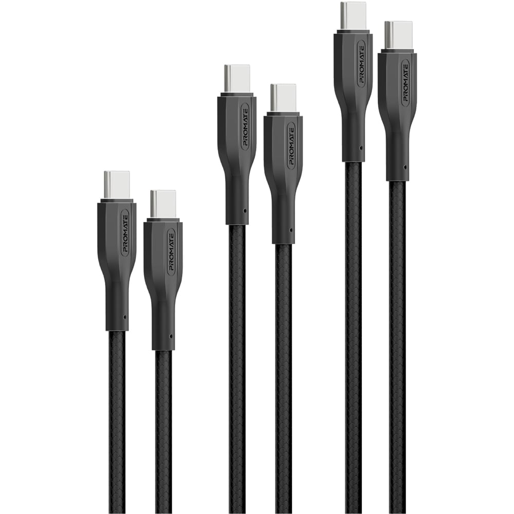 Cablu de date PROMATE CableKit-CC, USB-C - USB-C, 0.3m, 1.2m, 2m, negru