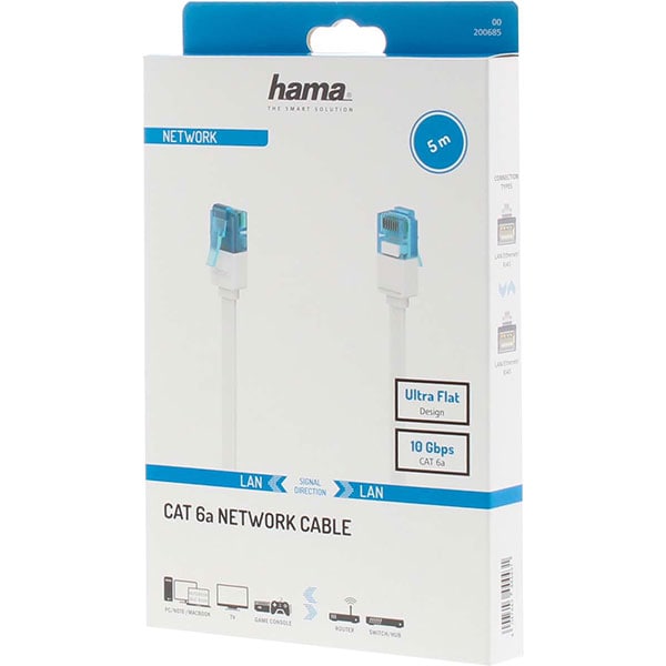 Cablu de retea CAT6a HAMA 200685, 5m, alb