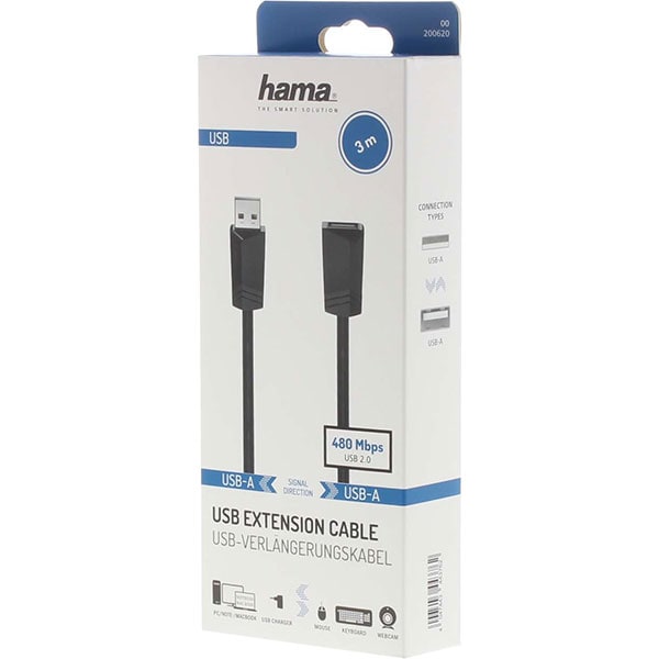 Cablu extensie USB 2.0 HAMA 200620, 3m, negru