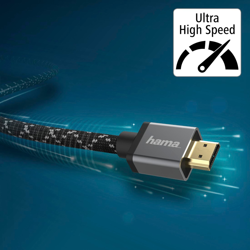 Cablu HDMI HAMA 205240, 3m, 8K HDR, placat aur, negru-gri