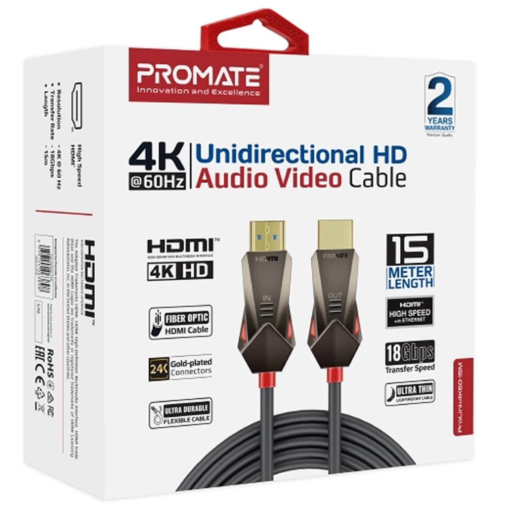 Cablu HDMI PROMATE ProLink4K60-15M vers 2.0, fibra optica, 4K, 15m, negru