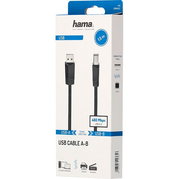Cablu USB 2.0 A - USB B HAMA 200602, 1.5m, negru