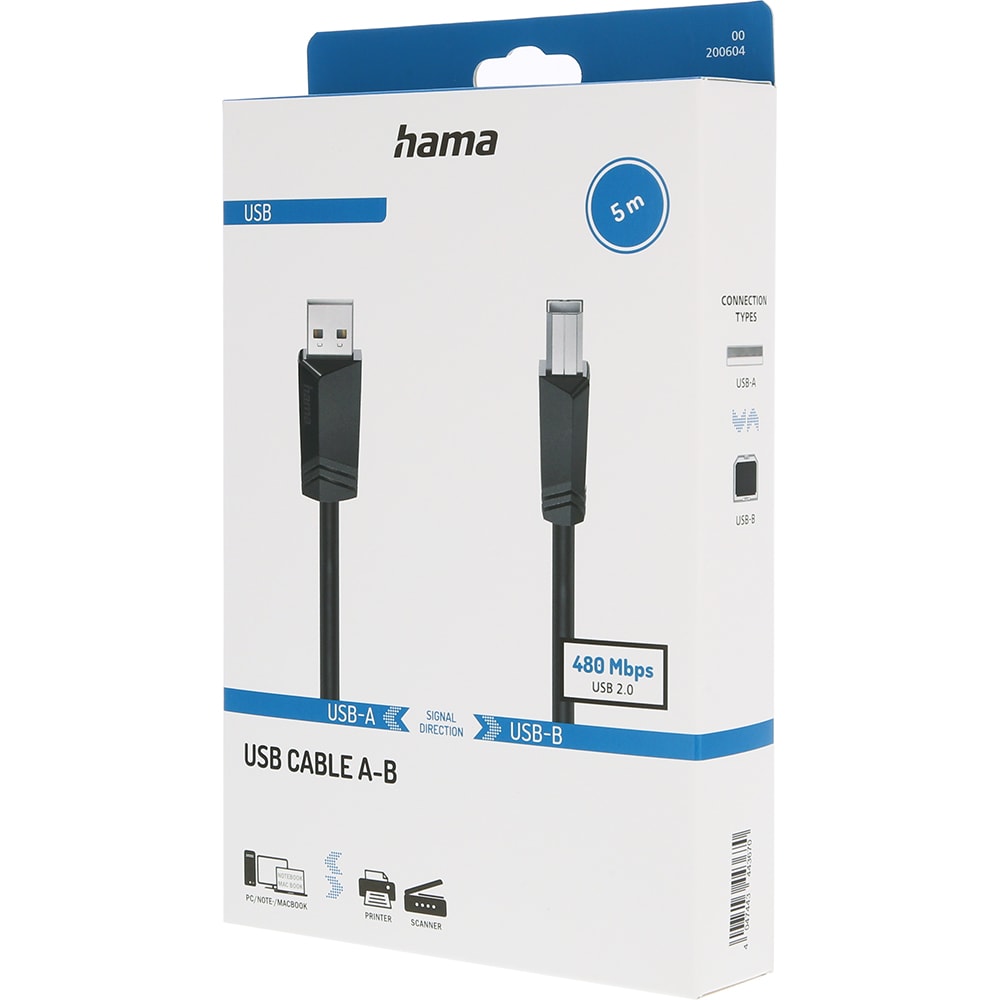 Cablu USB 2.0 A - USB B HAMA 200604, 5m, negru