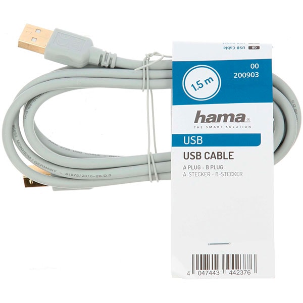 Cablu USB 2.0 - USB B HAMA 200903, 1.5 m, gri