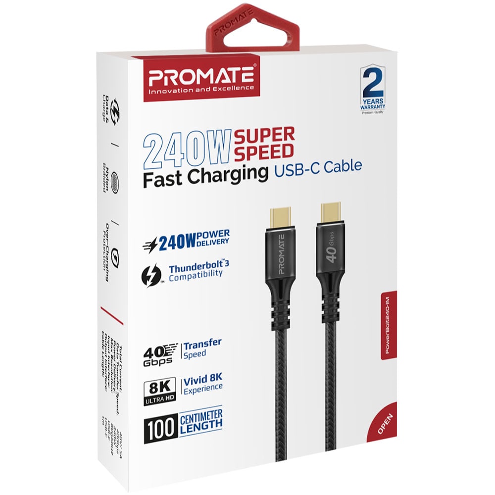 Cablu USB-C - USB-C PROMATE POWERBOLT240, 1m, negru