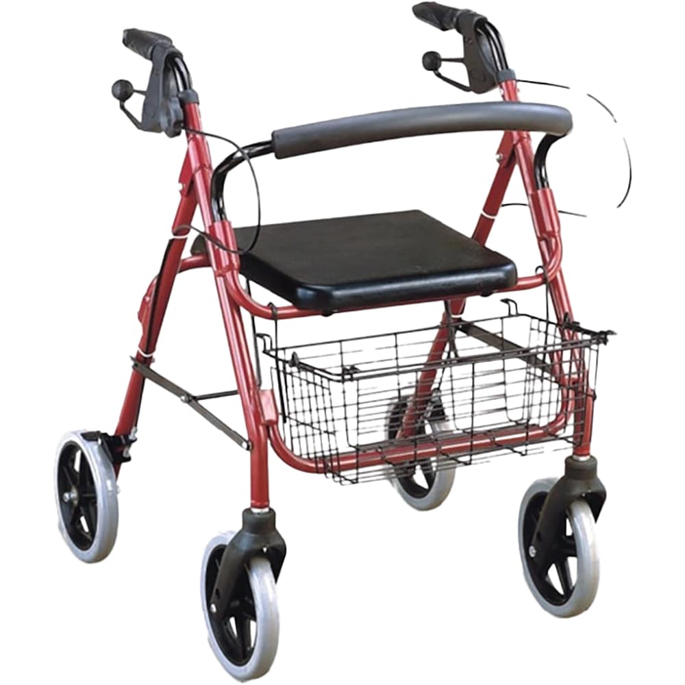 Cadru de mers rolator cu frana si cos BEST M 965LH, aluminiu, rosu/negru