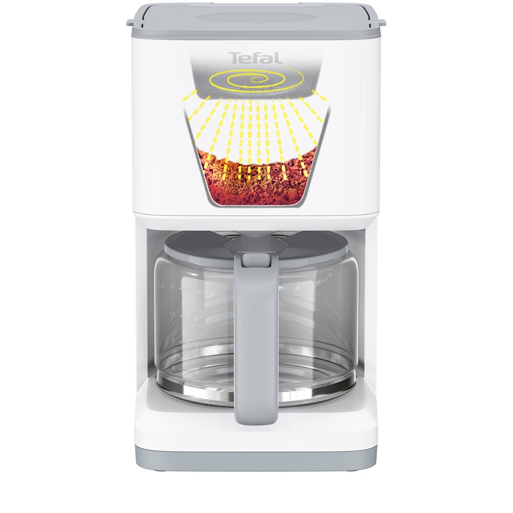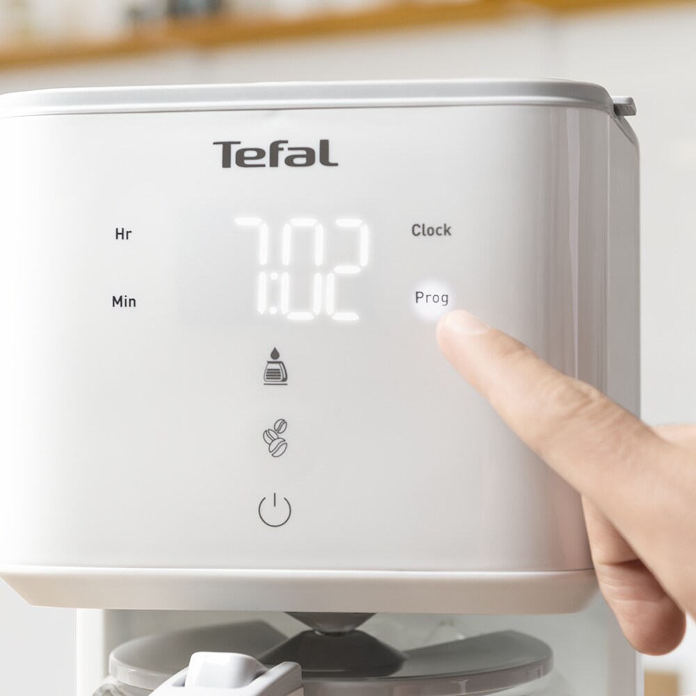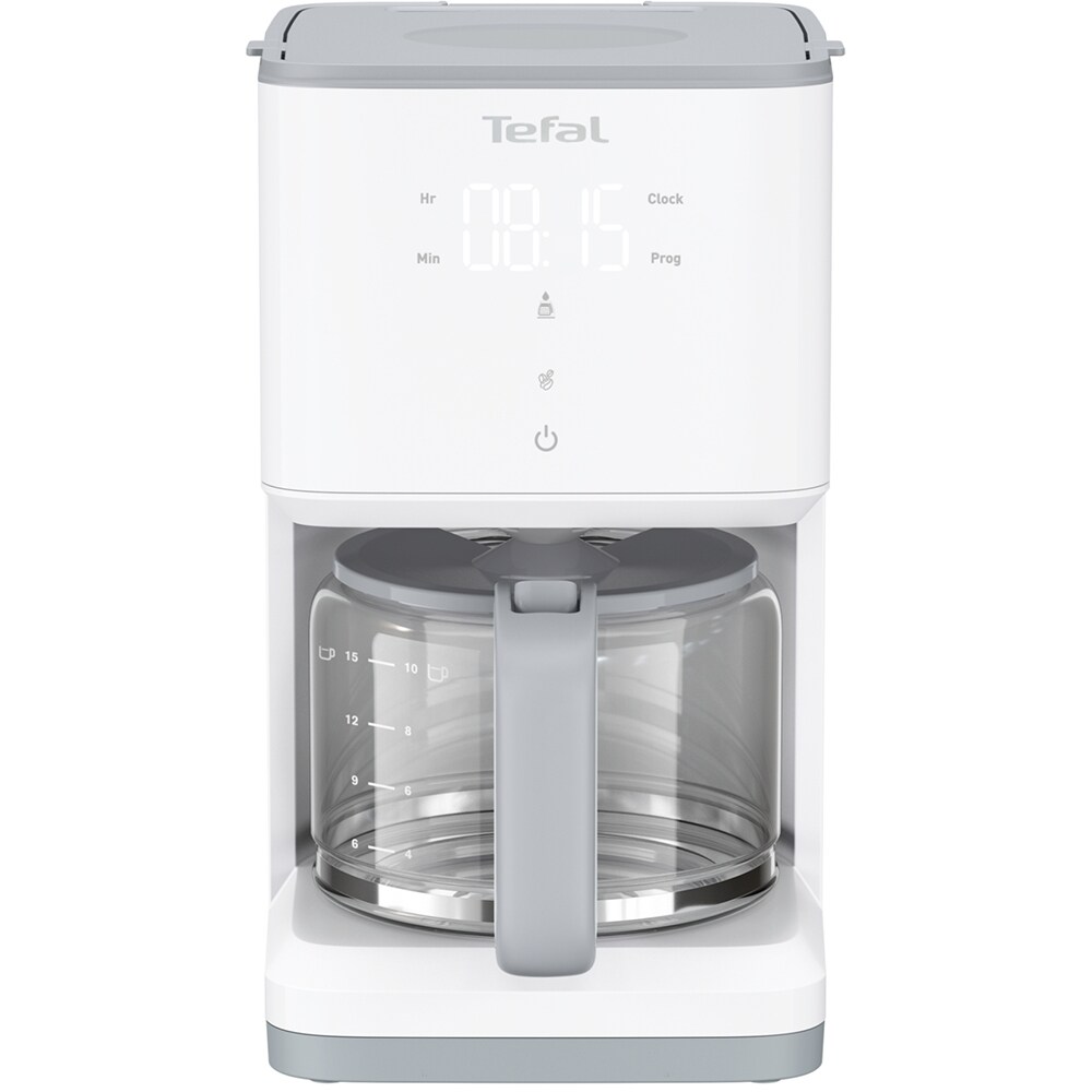 Cafetiera TEFAL Sense CM693110, 1.25l, 1000W, 15 cesti, ecran digital, alb-gri