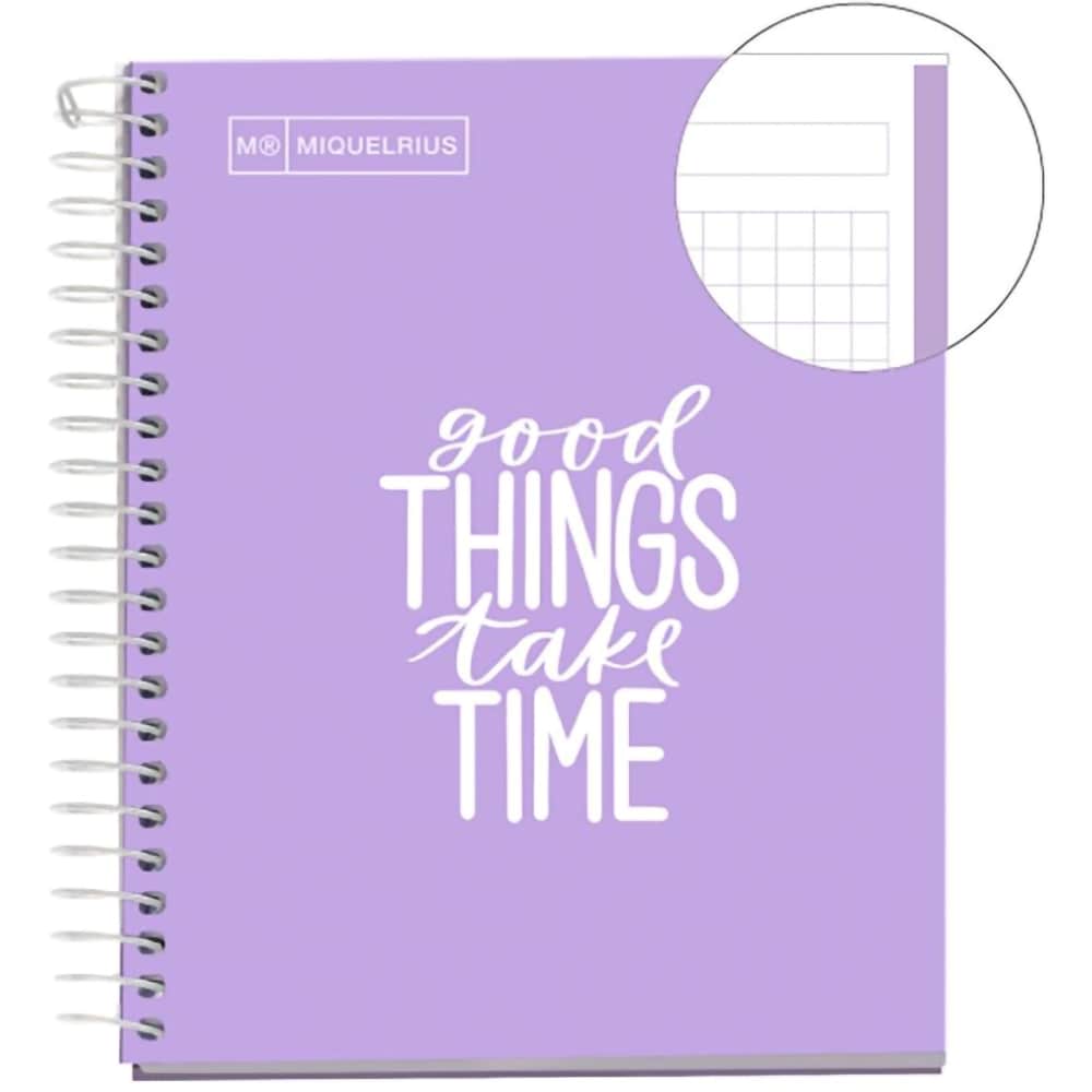 Caiet pentru scoala MIQUELRIUS Messages, matematica, A6, 100 file, legatura spirala, mov