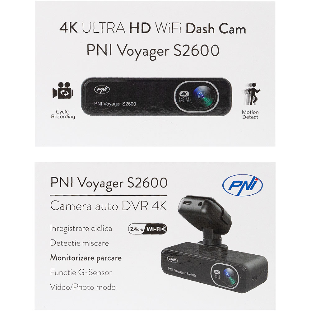 Camera auto DVR PNI Voyager S2600, 4K, Ultra HD, WiFi, G-Senzor