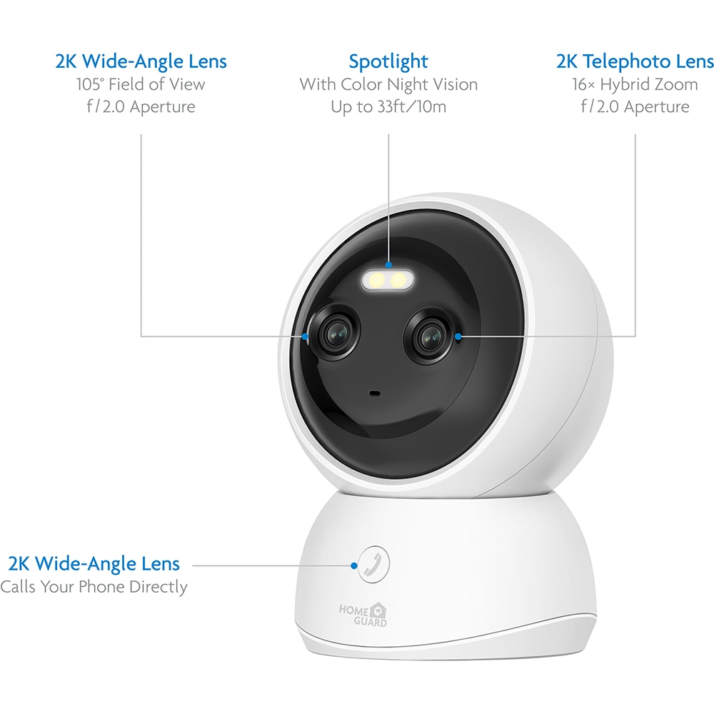Camera interior duala HOMEGUARD HGWIP222, 4Mp+4Mp, 2K, IR, alb