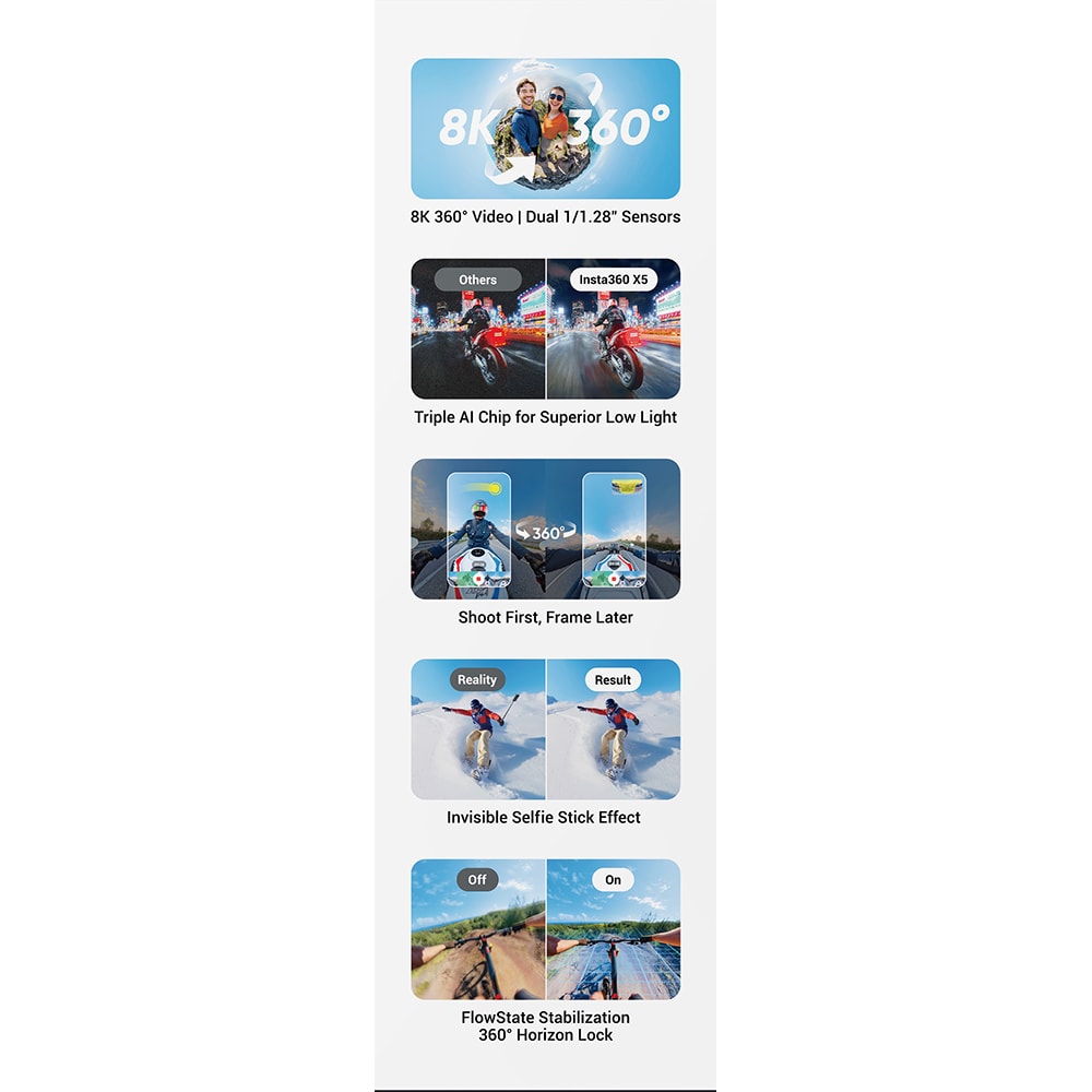 Camera video sport INSTA360 X5 Essentials Bundle, 8K, Wi-Fi, Bluetooth, negru