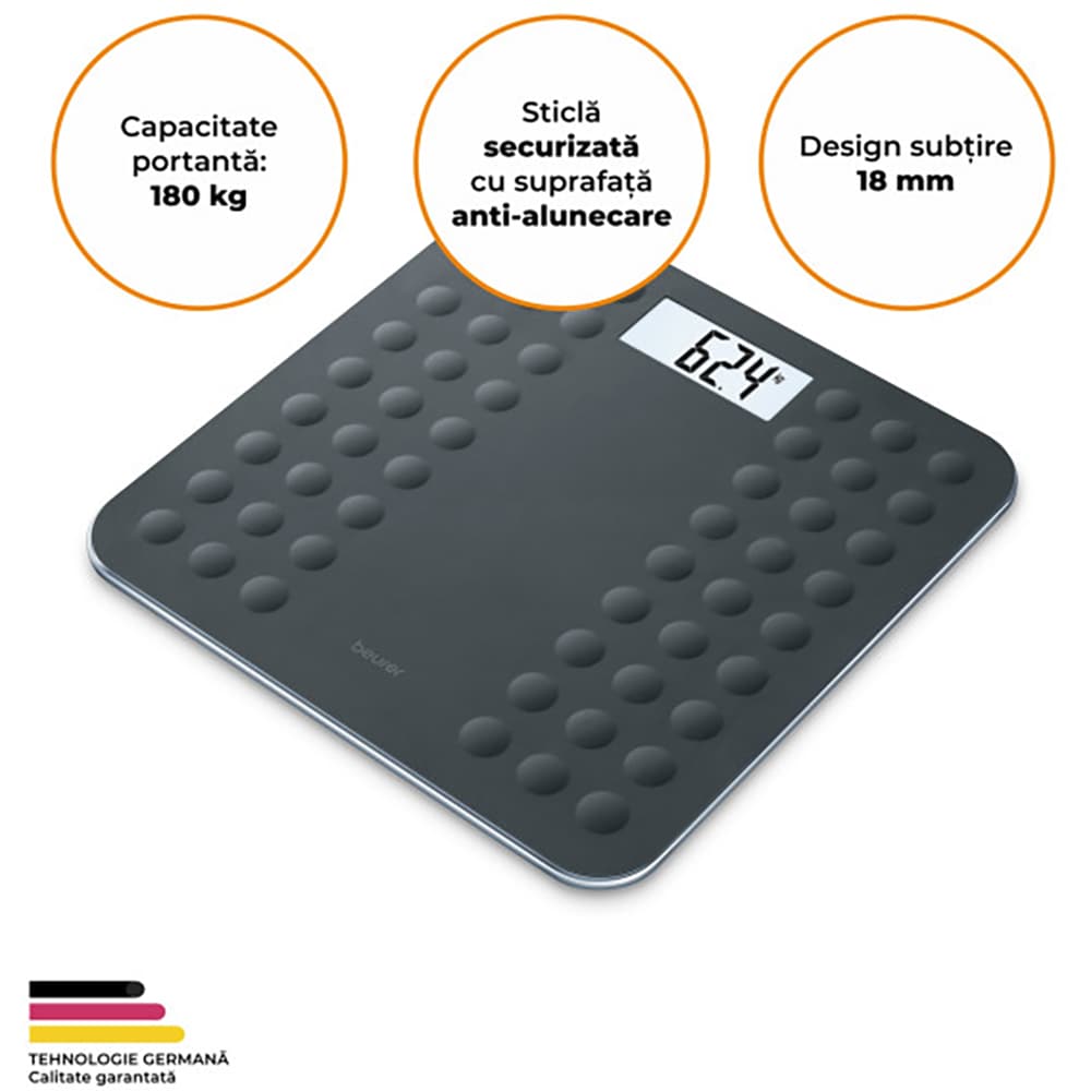 Cantar corporal BEURER GS300, 180kg, electronic, sticla, negru