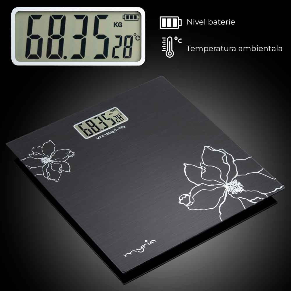 Cantar corporal MYRIA MY4805BK, 150kg, electronic, sticla securizata, negru