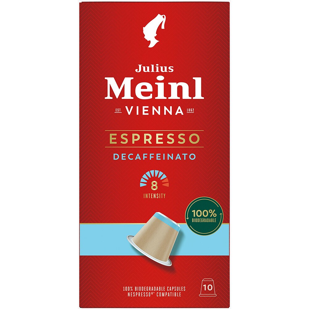 Capsule cafea JULIUS MEINL Espresso Decaffeinato, compatibile Nespresso, 10 capsule, 56g