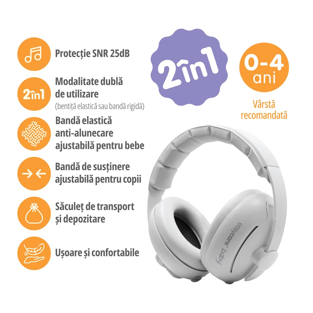 Casti antifonice bebelusi EASYCARE EASY00257, 0 luni+, alb