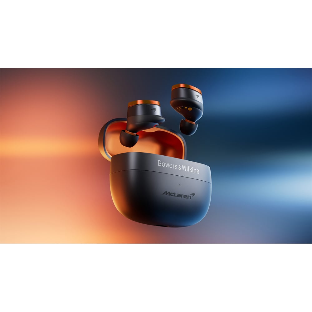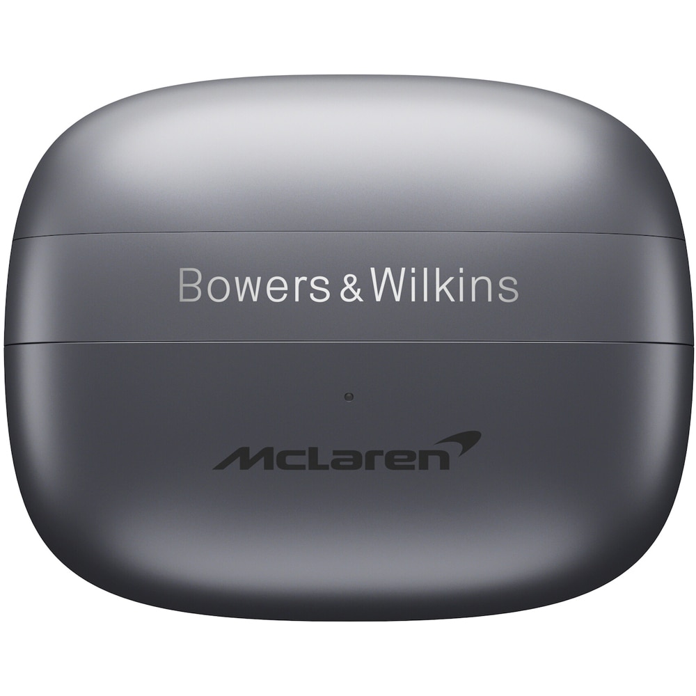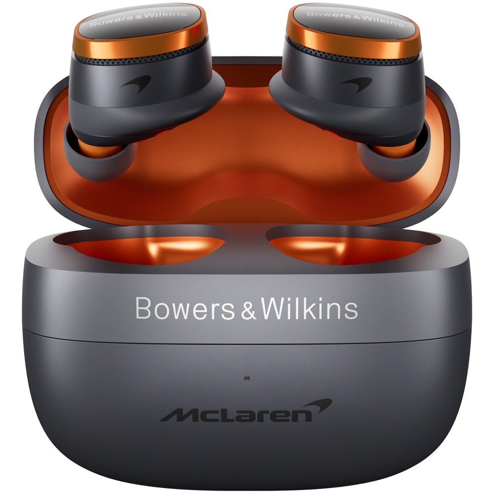 Casti BOWERS & WILKINS Pi8 McLaren Edition, True Wireless, Bluetooth, In-ear, Microfon, Noise Cancelling, Carcasa incarcare wireless, Grey/Papaya Orange