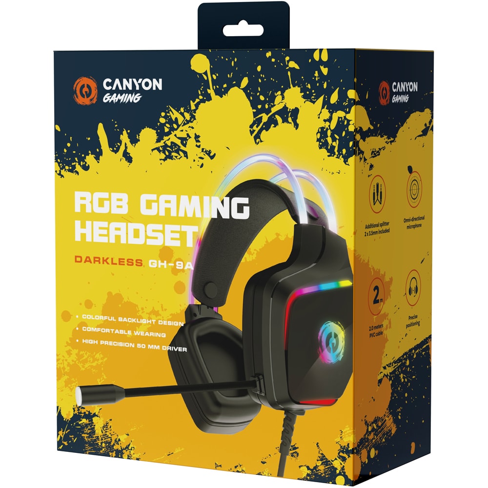 Casti Gaming CANYON Darkless GH-9A, USB, 3.5mm, stereo, negru