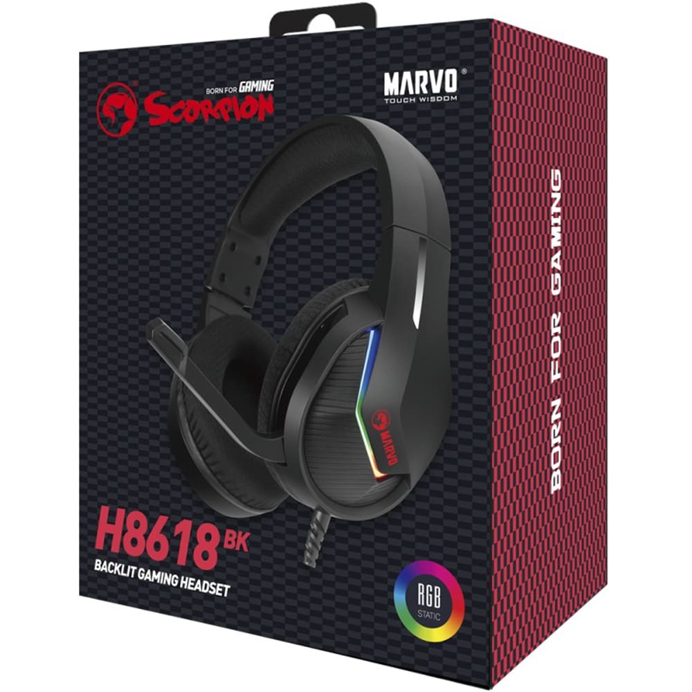Casti Gaming MARVO H8618 Black, stereo, USB, negru