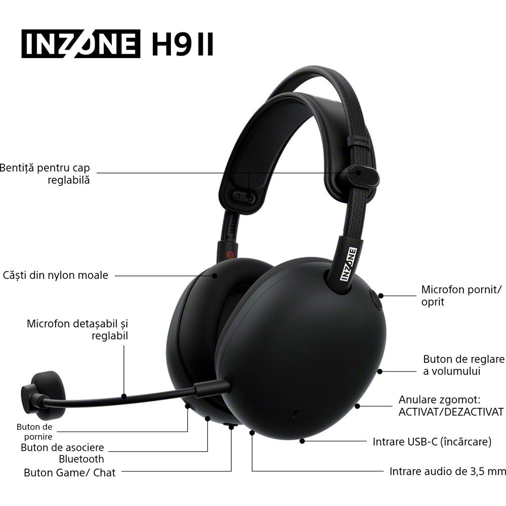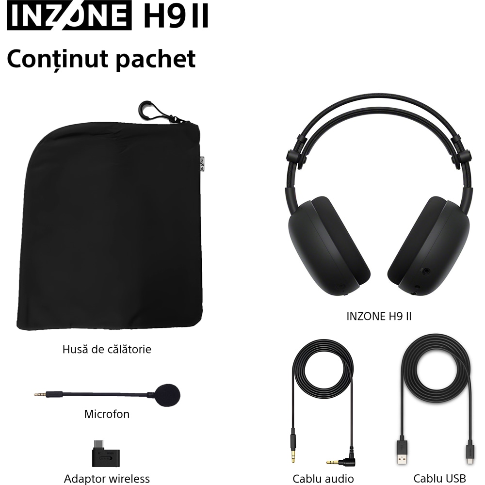 Casti Gaming Wireless SONY INZONE H9 II WH-G910NB, 7.1, multiplatforma, Noise Cancelling, negru