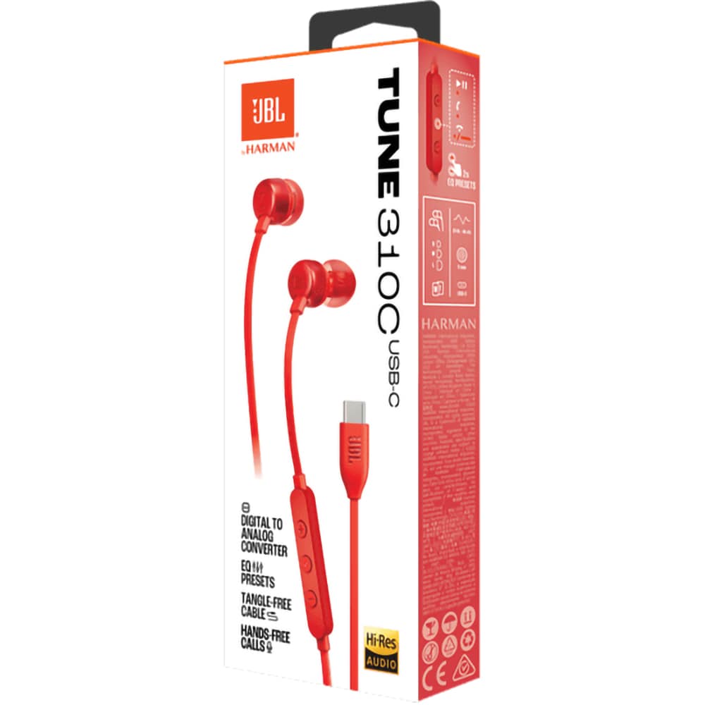 Casti JBL Tune 310C, Cu Fir, In-ear, Microfon, USB-C, rosu