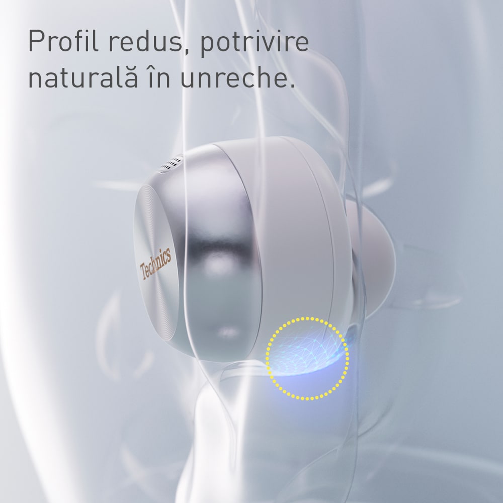 Casti TECHNICS EAH-AZ100E-S, True Wireless, Bluetooth, In-ear, Microfon, Noise Cancelling, Carcasa incarcare wireless, argintiu