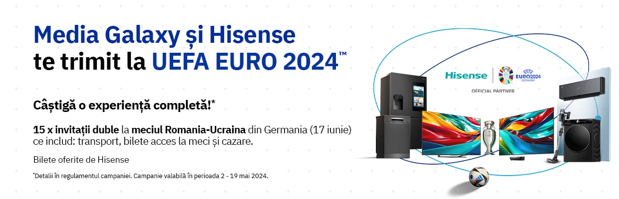 Cumpara orice produs Hisense de la Altex si poti castiga o experienta completa la UEFA EURO 2024: 15 invitatii duble la meciul Romania-Ucraina din Germania (17 iunie) ce includ: