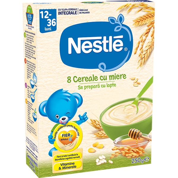 Cereale NESTLE 8 Cereale cu Miere 12385745, 12 luni+, 250g
