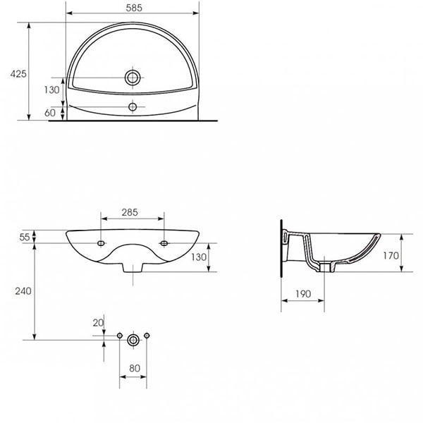Chiuveta baie ROMSTAL 80CR0243, montare sub blat, 58.5 x 42.5 cm, alb
