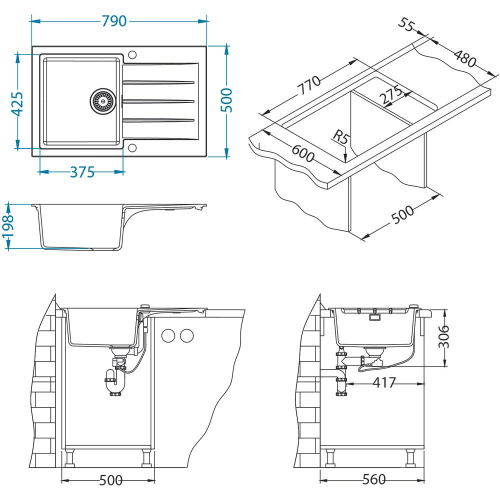 Chiuveta bucatarie ALVEUS Cadit 20 A91, 1 cuva, picurator reversibil, compozit granit, negru