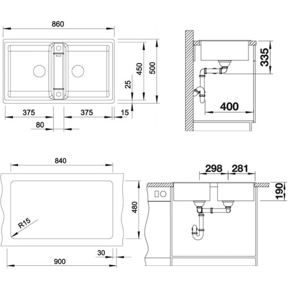 Chiuveta bucatarie BLANCO Zia 9, 2 cuve, compozit granit, negru