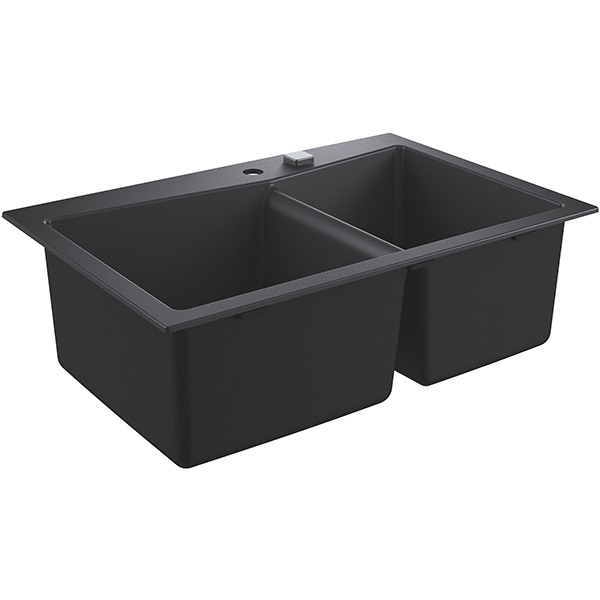 Chiuveta bucatarie GROHE K700 31657AP0, 2 cuve, montare dreapta, compozit quartz, negru