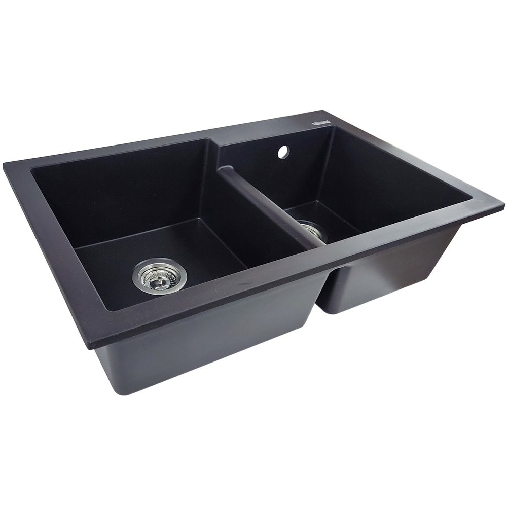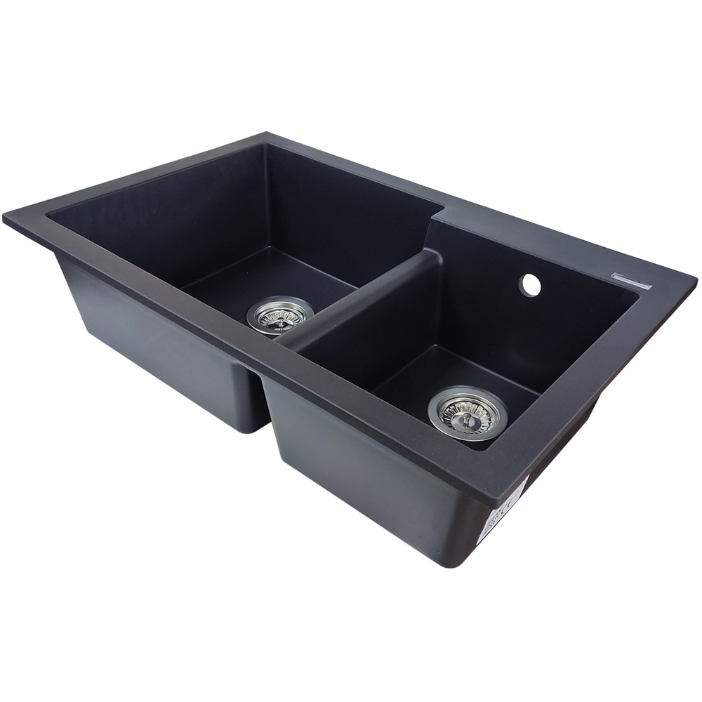 Chiuveta bucatarie SANDONNA Edyta 79, 2 cuve, compozit granit, negru