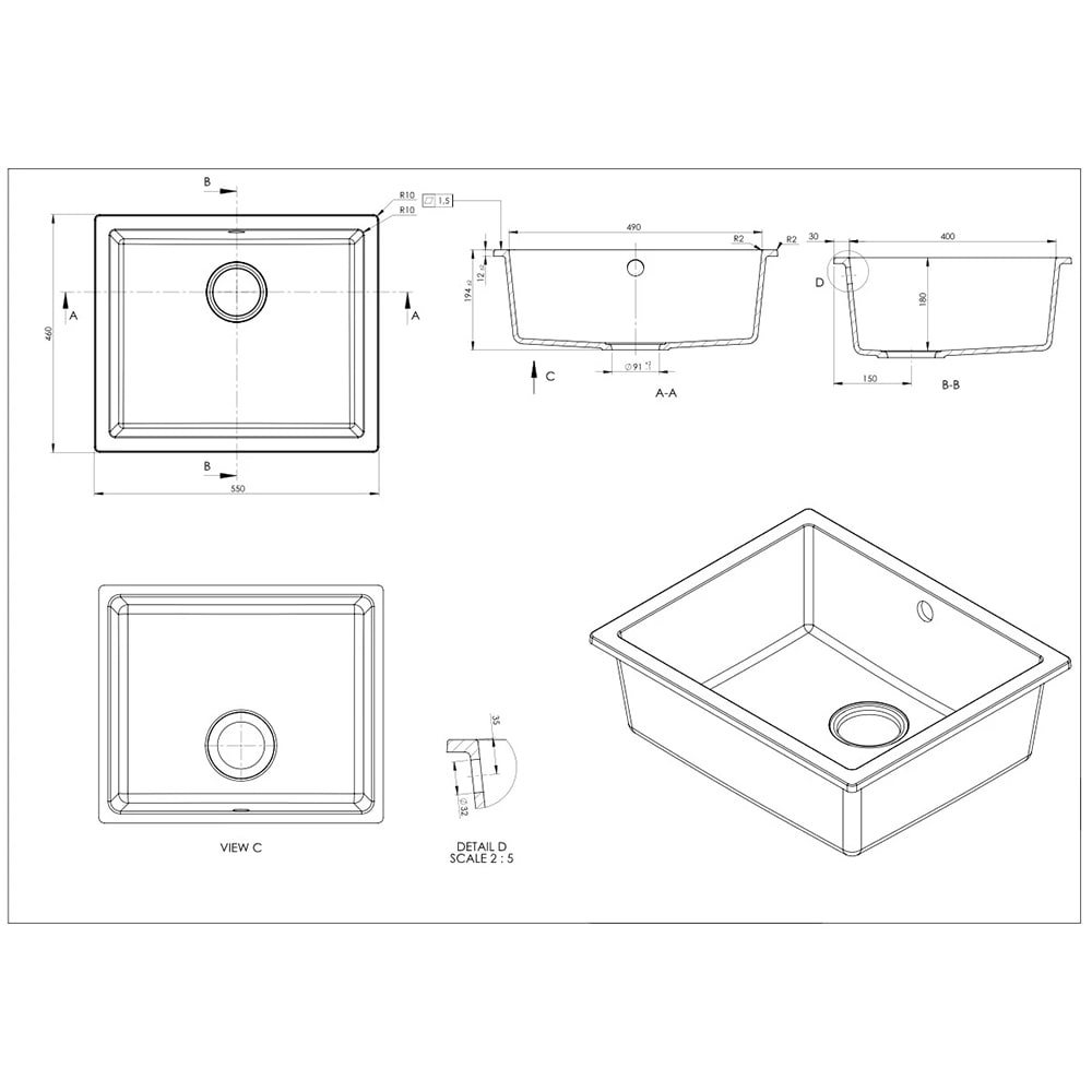 Chiuveta bucatarie SANDONNA Joanna 55, 1 cuva, compozit granit, bej