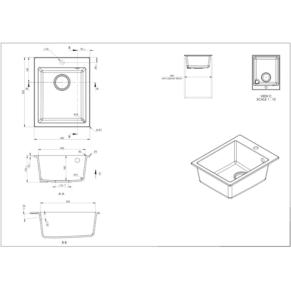 Chiuveta bucatarie SANDONNA Vesta 40, 1 cuva, compozit granit, bej