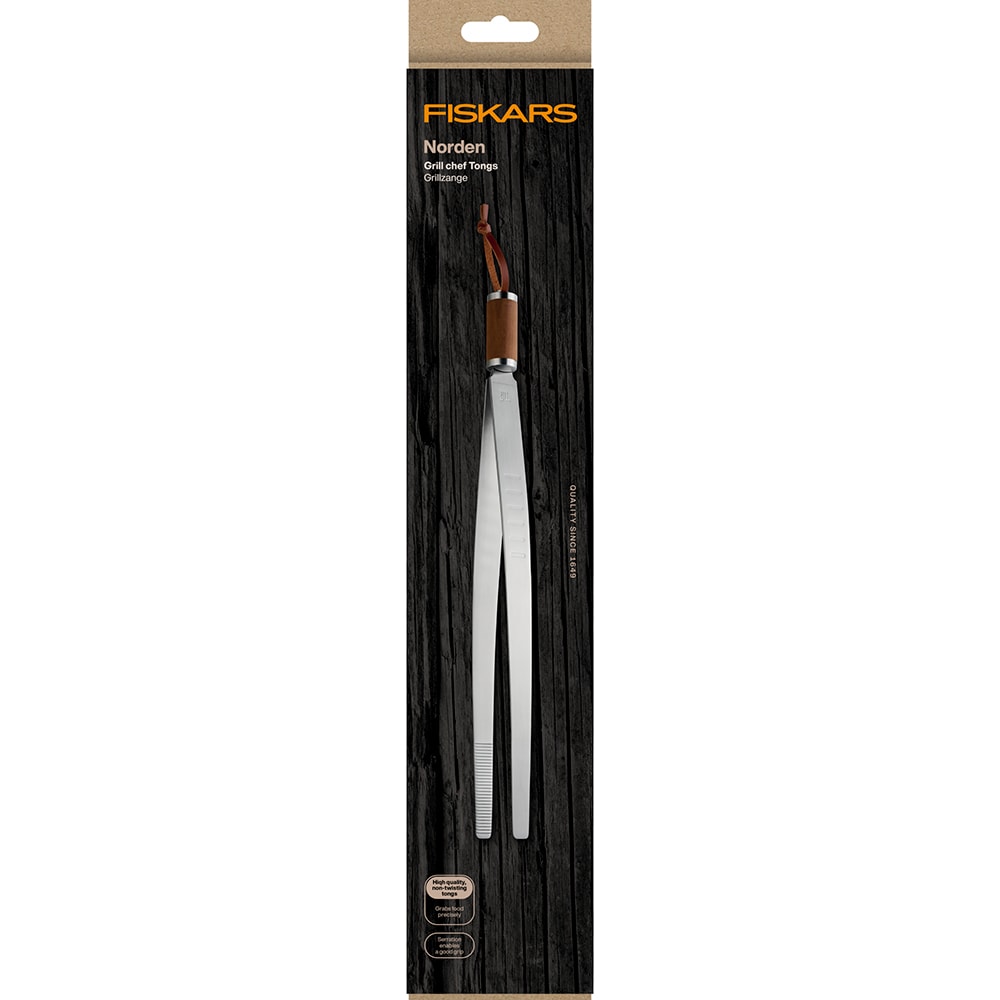Cleste pentru gratar FISKARS Norden, 44.4 cm, otel inoxidabil si lemn, argintiu/maro