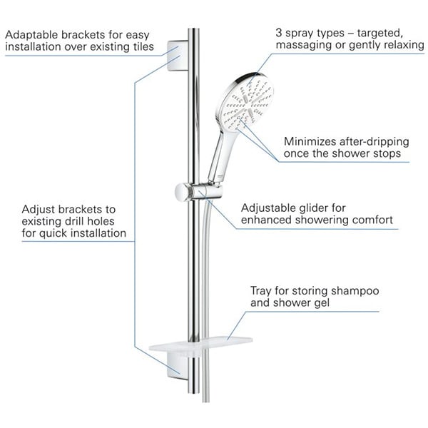 Coloana dus GROHE Rainshower SmartActive 130 26576LS0, 3 functii, crom