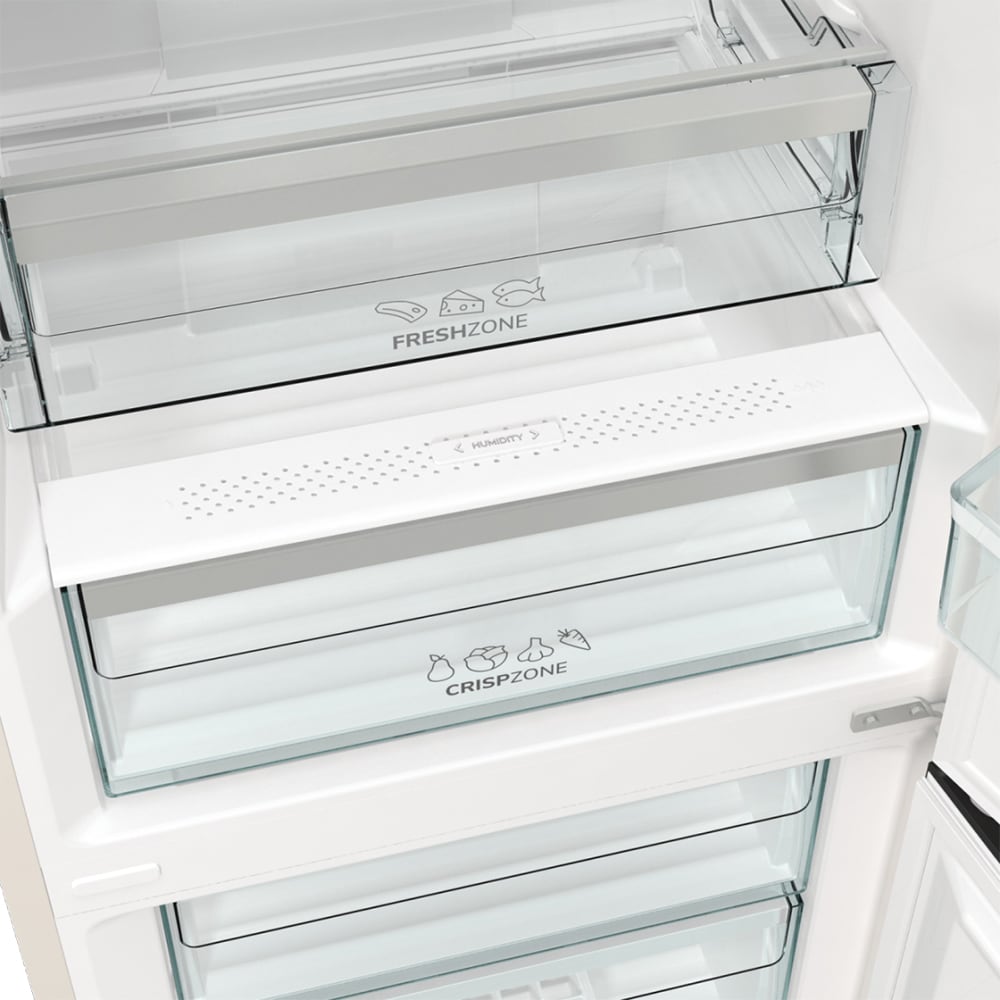Combina frigorifica GORENJE NRK6202AC4, No Frost Plus, 331 l, H 200 cm, Clasa E, crem