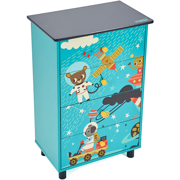 Comoda U-GROW Explore the universe UMC03-UNV, 4 sertare, 3 ani+, albastru