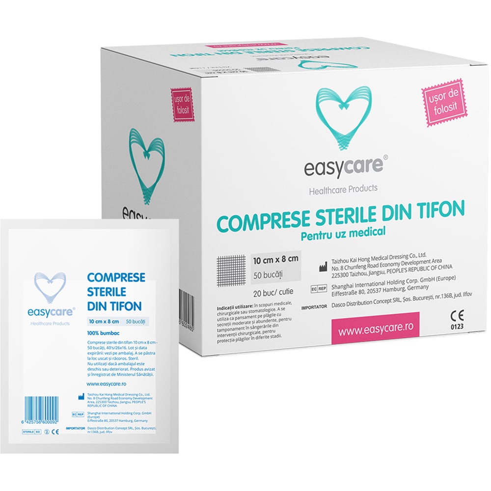 Comprese sterile EASYCARE tifon, taiate, 10x8cm, 20buc