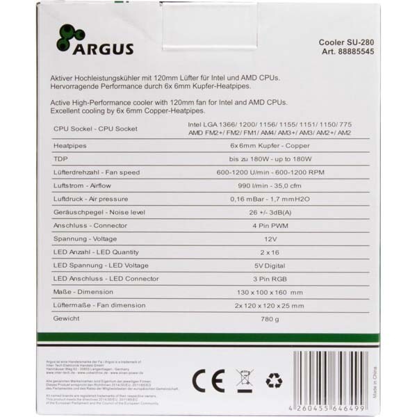 Cooler procesor INTER-TECH Argus SU-280 RGB, 2x120mm