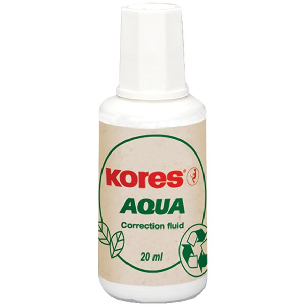 Corector fluid KORES, 20 ml, pe baza de apa, aplicator pensula