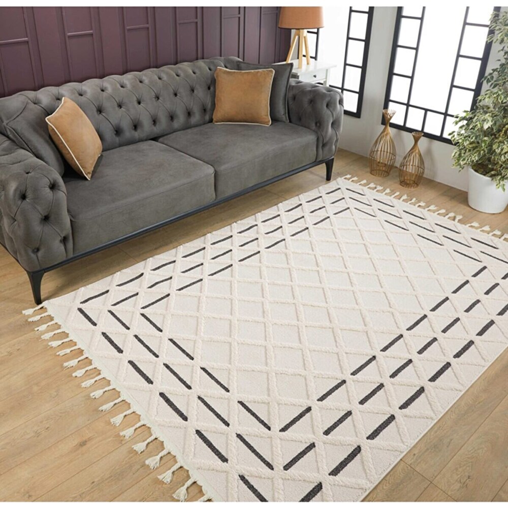Covor living / dormitor Shaggy, 80 x 150 cm, polipropilena, bej-negru