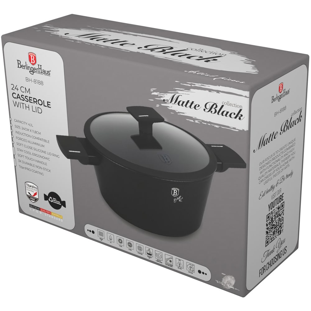 Cratita cu capac BERLINGER HAUS Matte Black BH/8188, 4.1l, 24 cm, negru mat