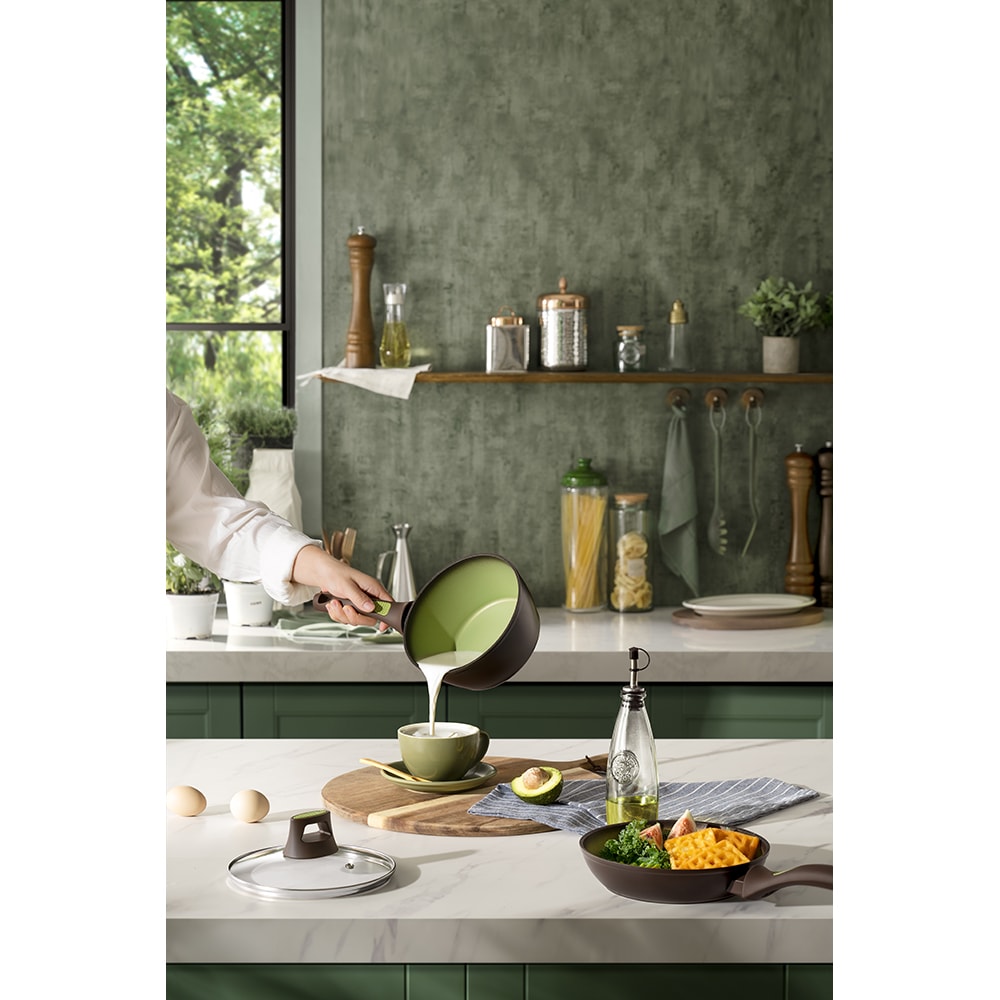 Cratita cu capac pentru sos AMERCOOK Avocado AC0108404.18, 1.5l, 18 cm, aluminiu forjat, negru-verde