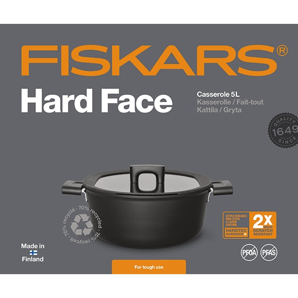 Cratita FISKARS Hard Face 1052228, 5l, 26cm, aluminiu, negru